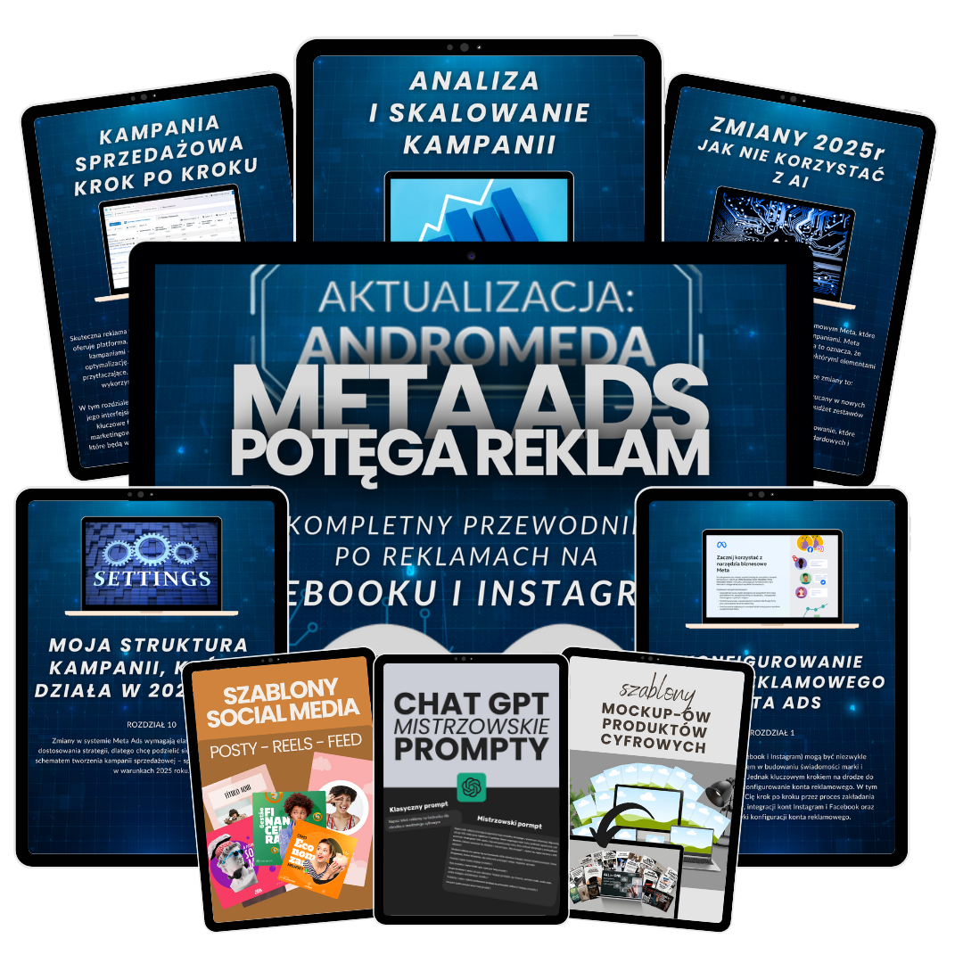 Chcesz wreszcie opanować reklamy na Facebooku i Instagramie i zacząć skutecznie sprzedawać swoje produkty cyfrowe? Ten e-book to praktyczny przewodnik po systemie Meta Ads, który krok po kroku przeprowadzi Cię przez cały proces tworzenia kampanii sprzedażowej – od konfiguracji konta aż po analizę wyników!